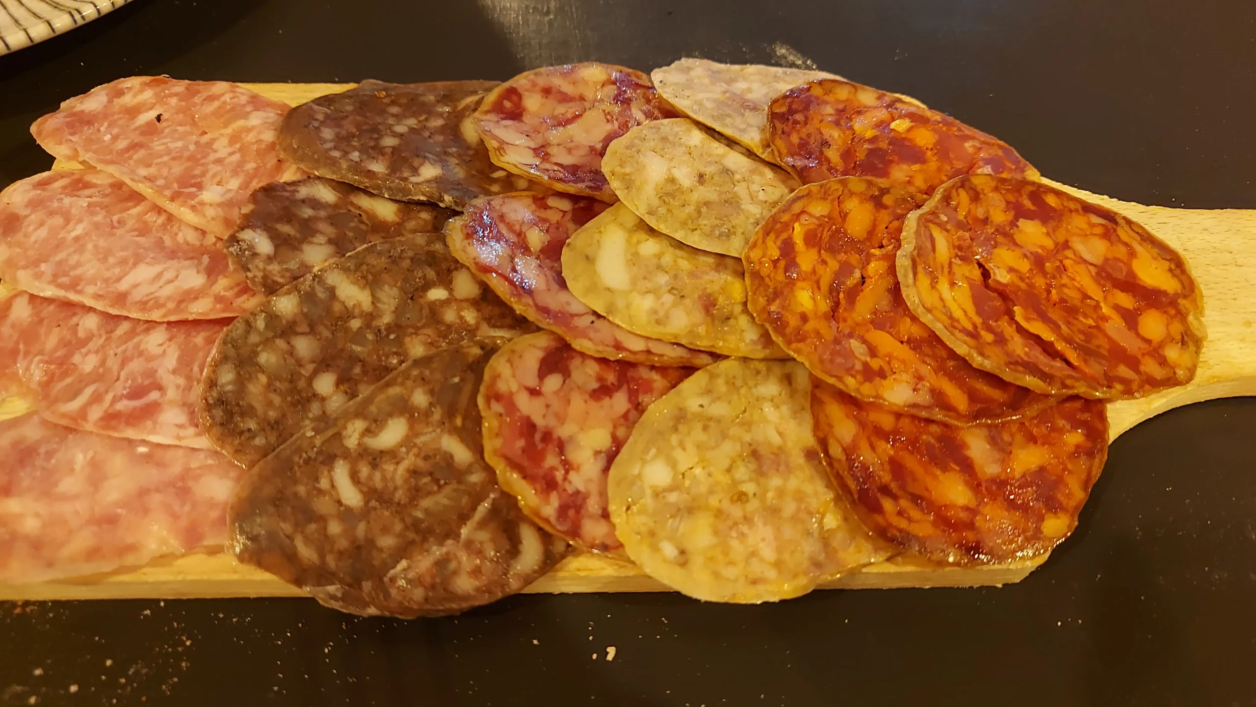 Las croquetas son una tapa muy recurrida y que gusta mucho. Quisimos probarlas a ver qué tal y, muy bien. Suaves y con sabor. También probamos media tabla de embutido, que no estaba mal. Embutido de chato murciano, que no tiene nada que envidiar a los embutidos de la chacinería de otras tierras más frías.