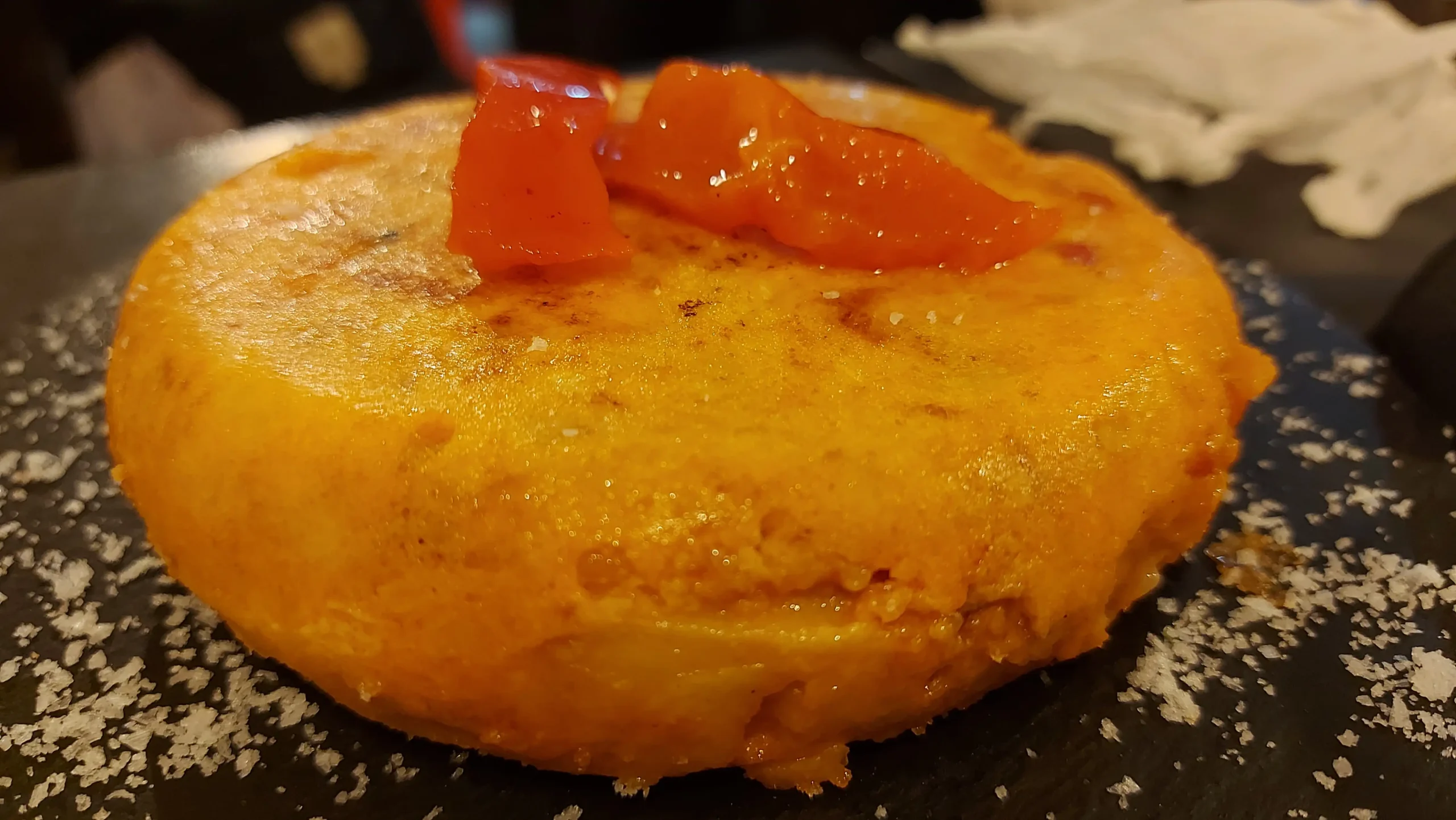 Aquí, en Al Diablo Tapas, también hay mini tortillas y las tienes de jamón y trufa, de morcilla y cebolla caramelizada, la española y la de chorizo y pimientos asados. Fue precisamente esta última la que probamos y, muy bien: el toque del chorizo asturiano con los pimientos asados combina a la perfección y hace la tortilla muy agradable.