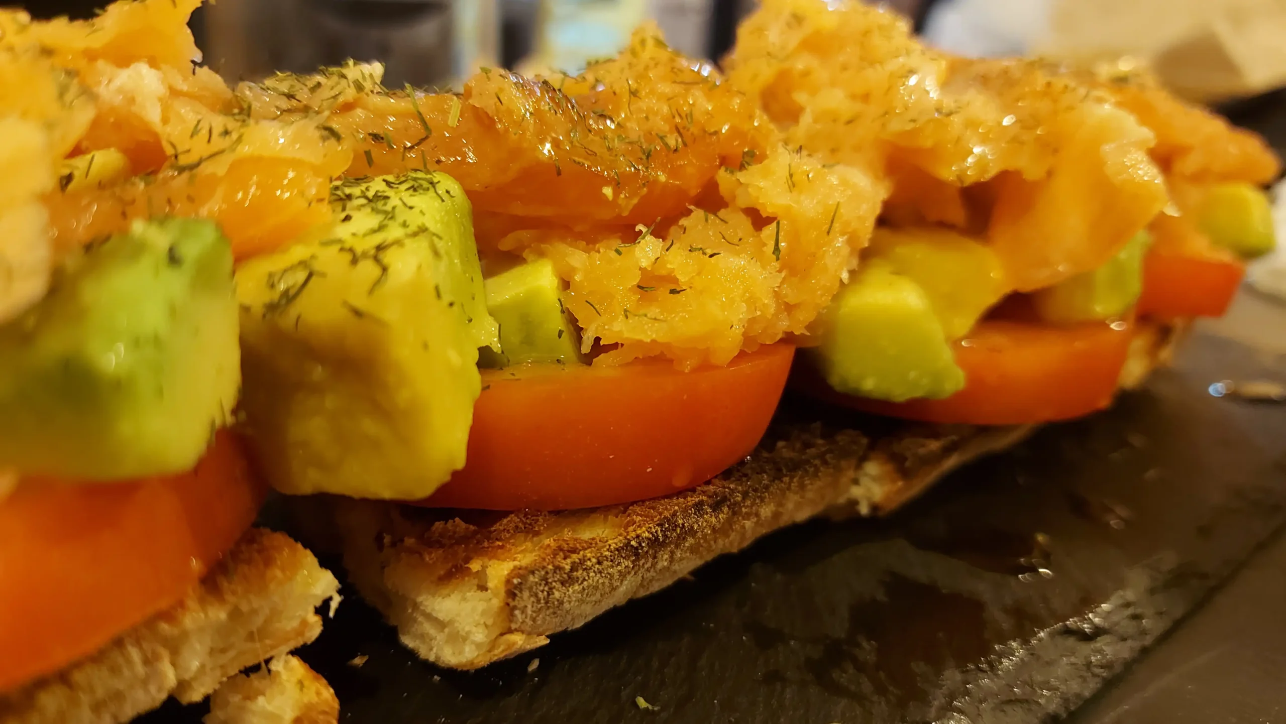 La carta cuenta con una serie de tostas: de solomillo a la pimienta, de carrillera y ralladura de chocolate, de queso brie con nueces y mermelada de higos y la que probamos nosotros, la de salmón con aguacate y tomate. Aunque ahora que estoy escribiendo este artículo, hubiera pedido la de carrillera con ralladura de chocolate. Bueno, la tosta que pedimos estaba muy buena, con una presentación esperada para este tipo de platos.
