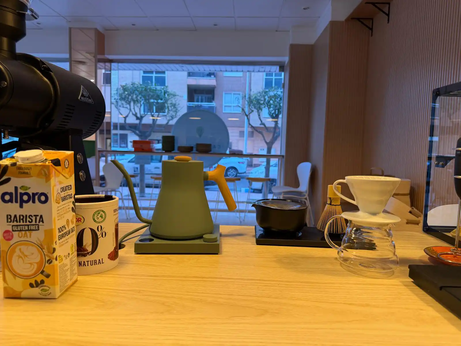 Para quienes desean profundizar aún más en los matices, el establecimiento ofrece métodos alternativos como V60 y AeroPress, pensados para degustar el café sin leche y apreciar sus perfiles aromáticos y su complejidad en boca. Los granos proceden de distintos países y procesos de fermentación, y en el caso de estos métodos la selección es todavía más específica, orientada a la cata y al disfrute pausado. Se puede elegir entre leche de vaca o bebidas vegetales, pero siempre con una premisa clara: el protagonista es el café.