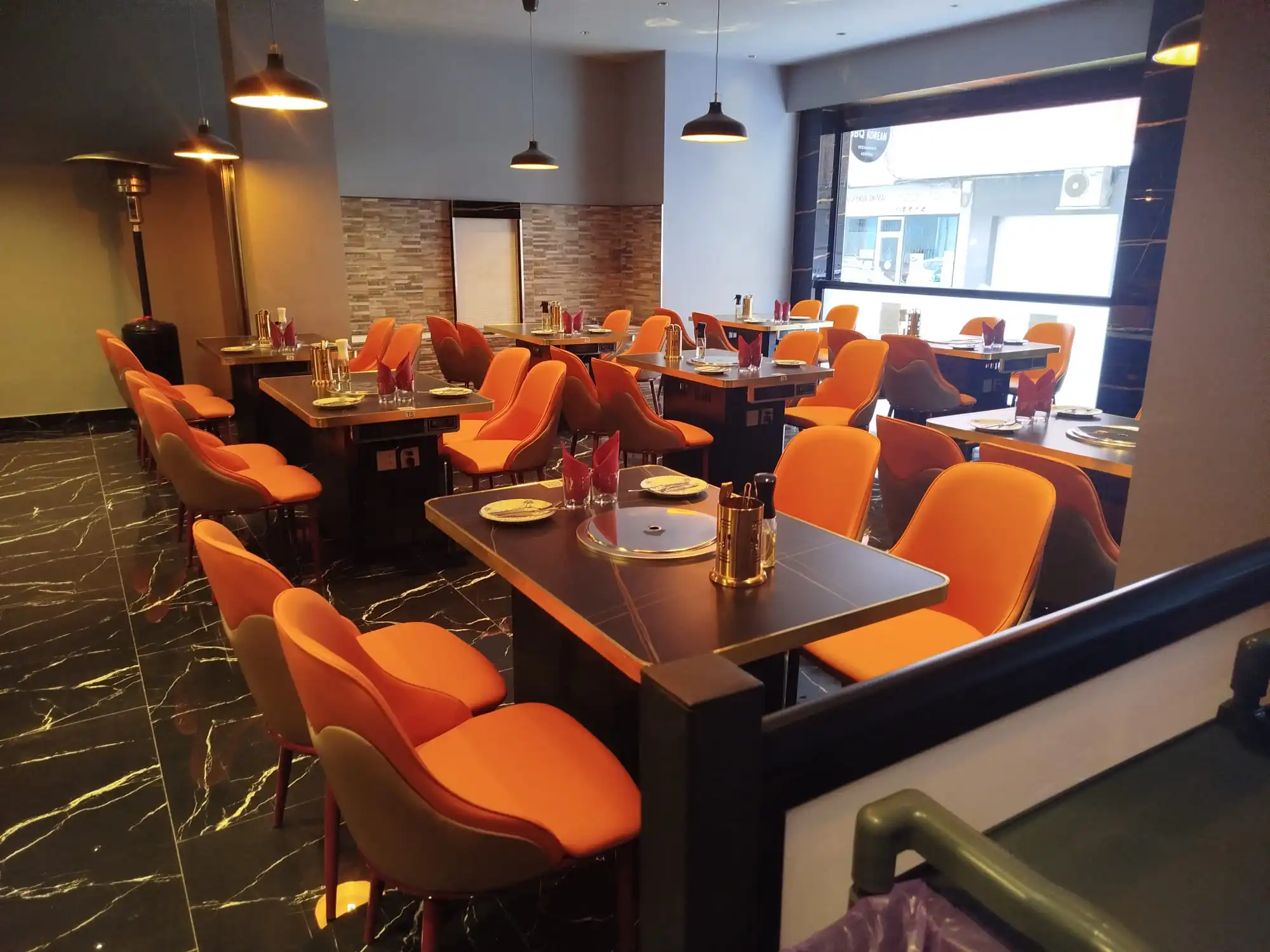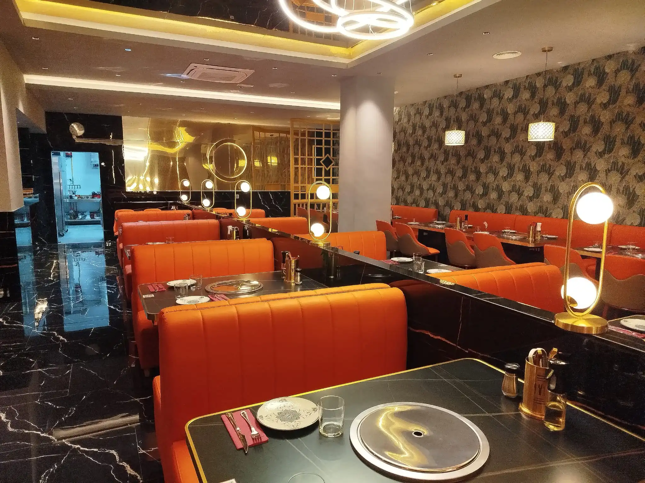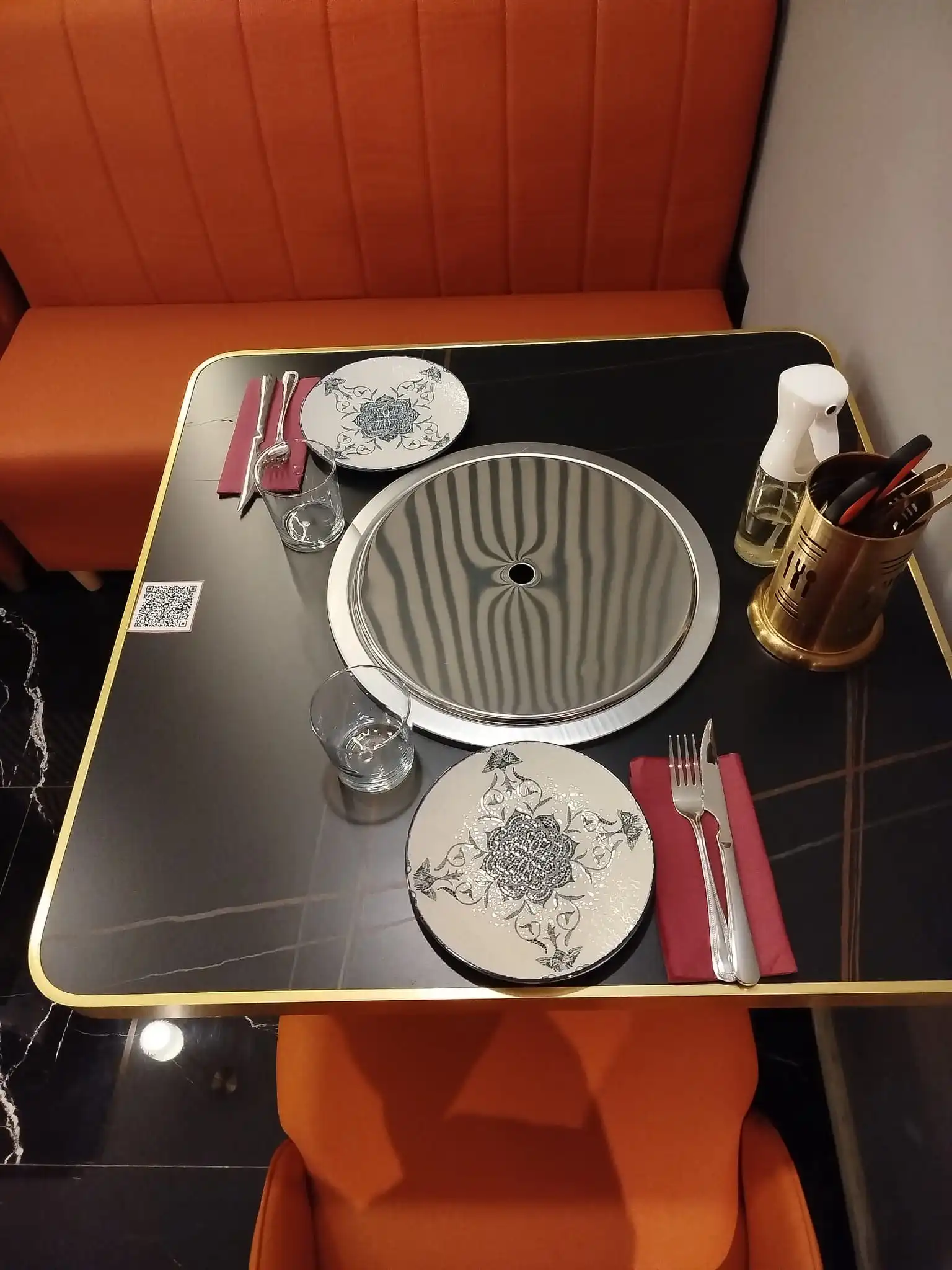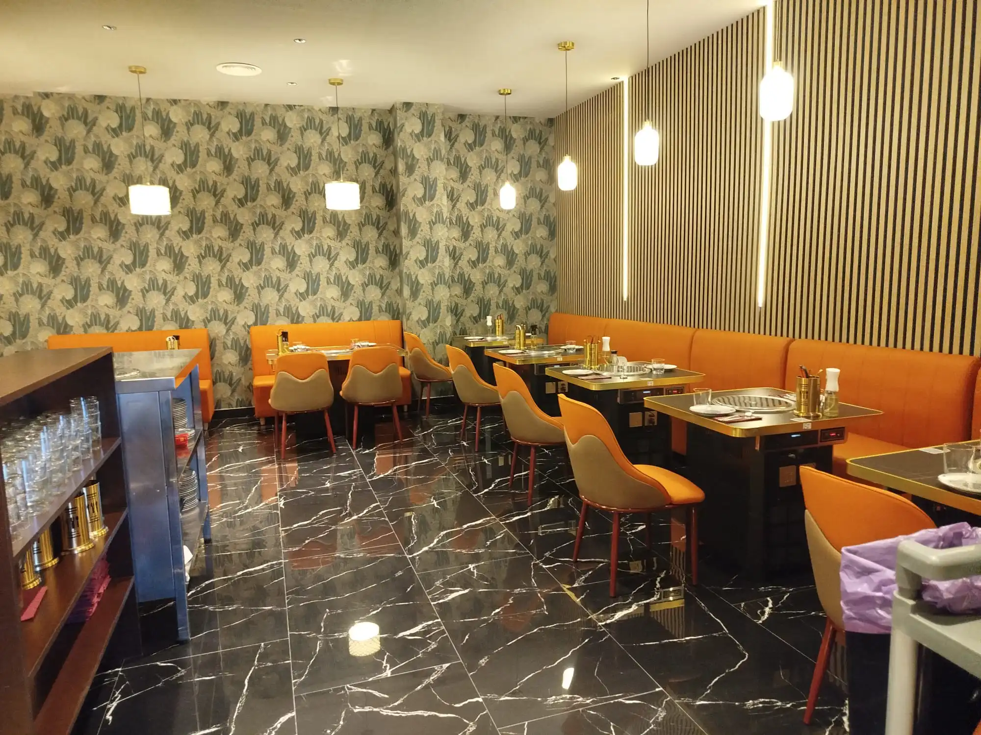 El espacio acompaña con acierto la propuesta. El local sorprende por su amplitud y por una estética cuidada, donde la disposición de las mesas con parrilla integrada no solo resulta funcional, sino también visualmente atractiva. Hay algo casi escénico en observar cómo cada mesa se convierte en un pequeño foco de actividad, con el fuego como elemento central y la conversación fluyendo a su alrededor.