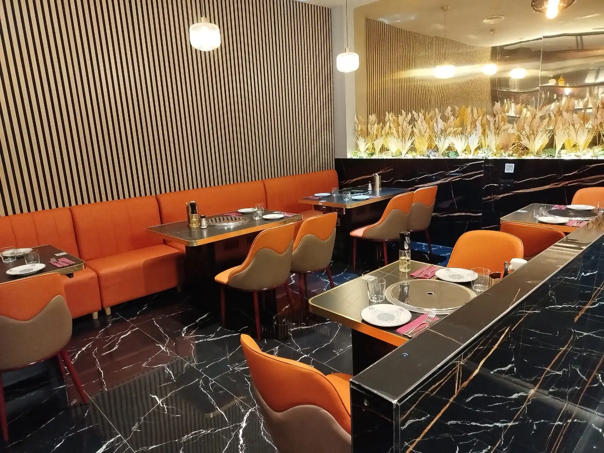La barbacoa coreana —conocida como Korean BBQ— no es simplemente una técnica culinaria, sino casi un ritual. En Corea del Sur, compartir mesa alrededor de una parrilla es sinónimo de reunión, de celebración cotidiana, de tiempo compartido. Aquí, ese concepto se traslada con fidelidad: cada mesa incorpora su propia parrilla, integrada en el centro, donde el comensal se convierte en protagonista activo. No hay cocina oculta ni platos que llegan terminados; hay fuego, ingredientes frescos y la libertad de decidir el punto exacto de cada bocado.