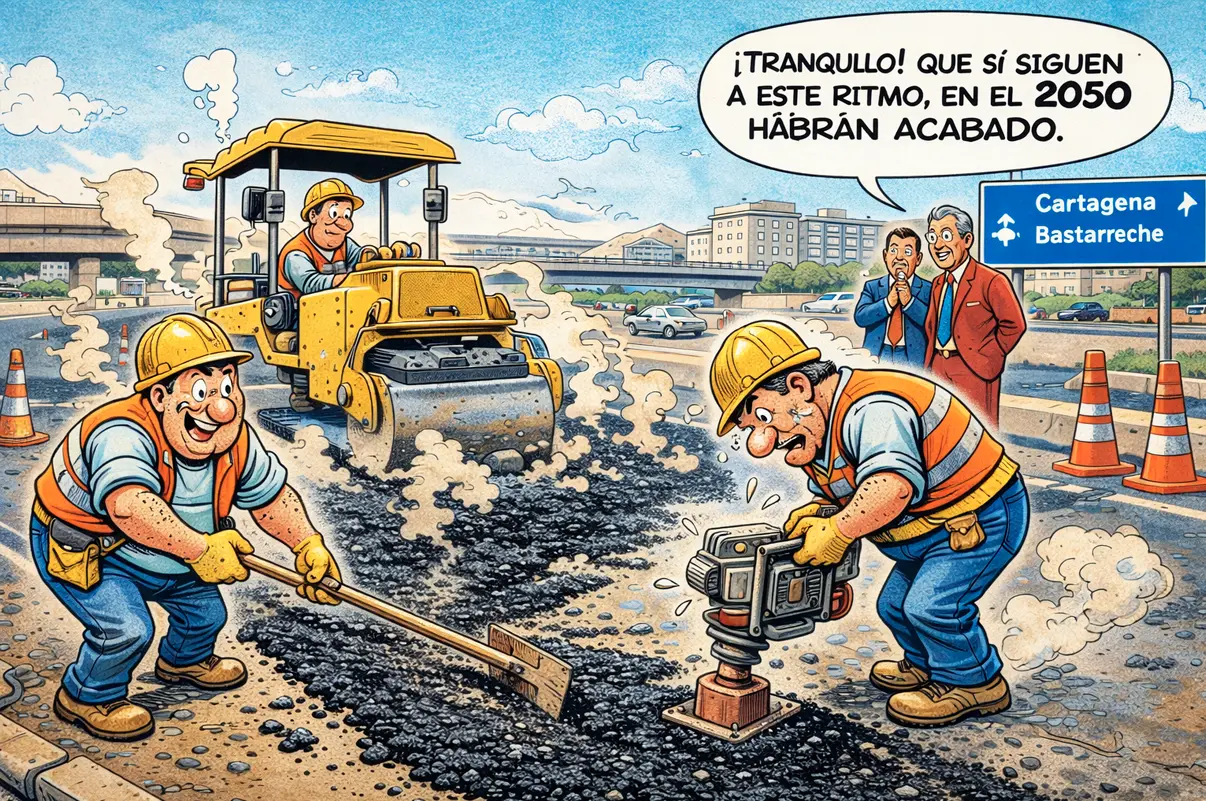 “Había pensado tocar en este artículo la ‘púa’ que me dejó la Autoridad Portuaria de Cartagena de más de seiscientos ‘aurelios‘, pero resulta que me pueden las ganas de hablar de carreteras después del éxito del ‘atajo’ del enlace Puerto de la Cadena-Archena, que llega con varias décadas de retraso, y ver lo fácil que sería reducir el tráfico en Bastarreche, pero que no se hace, mientras que en las carreteras de La Palma y La Aparecida en poco tiempo se acometen dos obras que afectan a la misma zona de esas vías o que con el Sifón no se aprovechan unas buenas circunstancias.