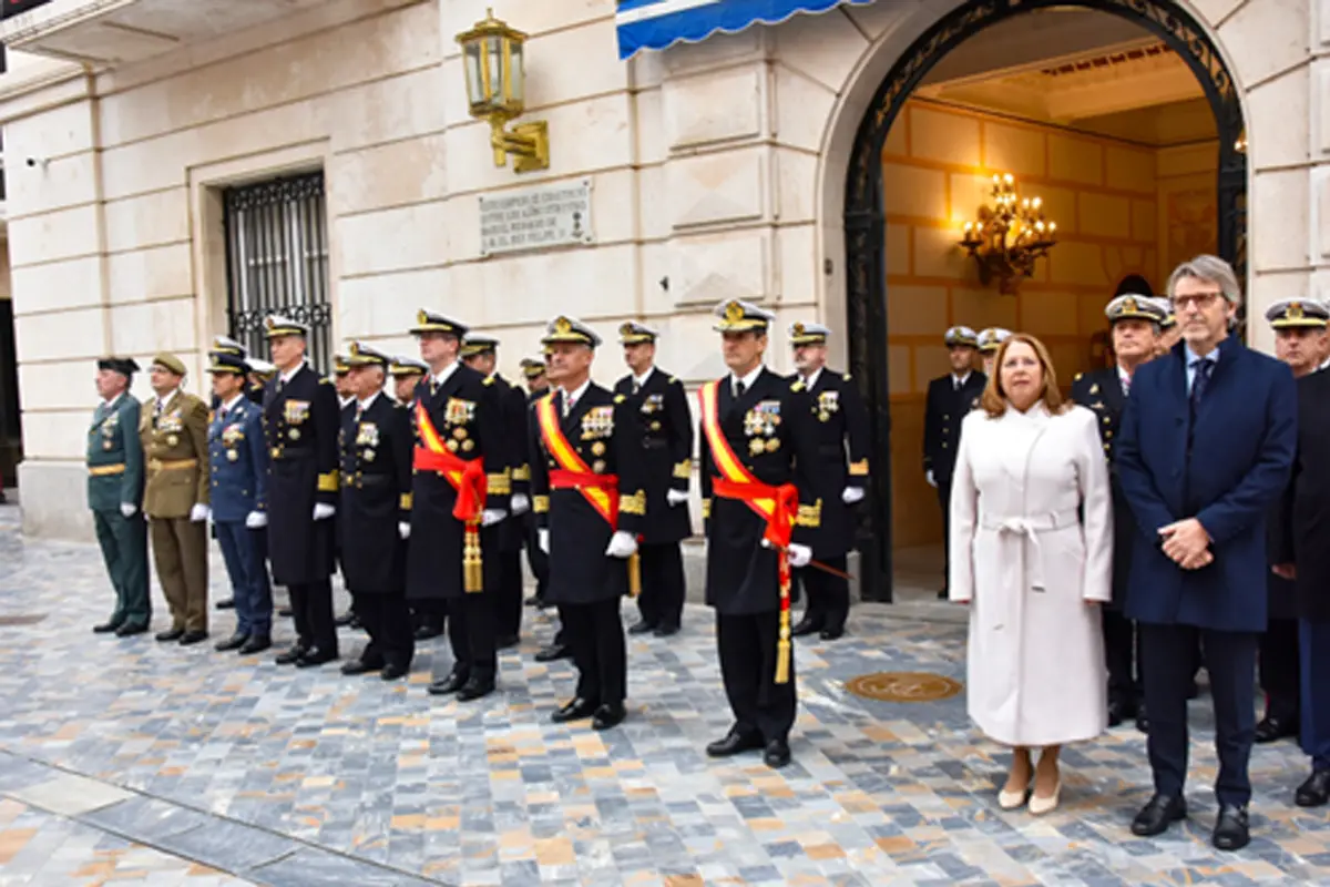 La celebración ha contado con la participación de una compañía mixta de honores que ha realizado un desfile militar frente a la fachada principal de Capitanía. La fuerza desplegada ha reflejado la pluralidad y coordinación de los distintos ejércitos y cuerpos presentes en la Región de Murcia, con una escuadra de gastadores y banda de música, cornetas y tambores del Tercio de Levante de la Infantería de Marina, una sección del Regimiento de Artillería Antiaérea RAAA-73 del Ejército de Tierra, una sección del Ejército del Aire y del Espacio procedente de la Base Aérea de Alcantarilla, así como efectivos de la Armada pertenecientes a la Fuerza de Acción Marítima, el Centro de Buceo de la Armada, la Flotilla de Submarinos y la Fuerza de Medidas Contra Minas. A ellos se ha sumado una sección de la Guardia Civil de la 5ª Zona, completando una imagen de unidad institucional y operativa.
