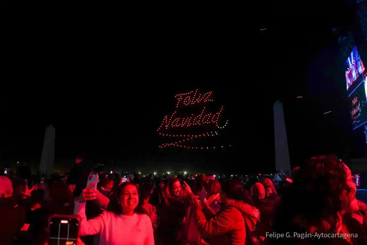 Cartagena despidió la tarde de este viernes 5 de diciembre con un estreno luminoso que quedará grabado en la memoria colectiva. La ciudad dio la bienvenida oficial a la Navidad con un espectáculo de drones que reunió a unas 50.000 personas distribuidas por toda la fachada marítima, todas pendientes de un cielo que, durante unos minutos, se convirtió en un lienzo de luz, color y emoción compartida.