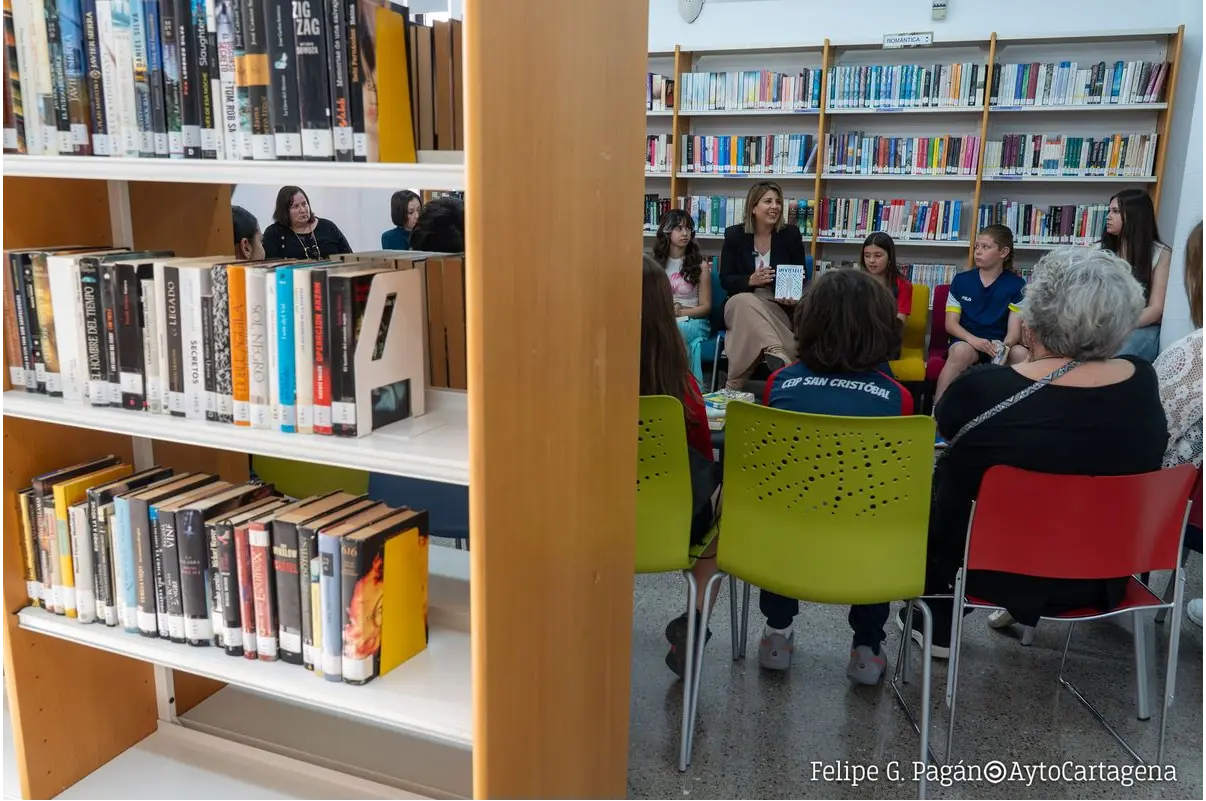 La alcaldesa, durante su visita a la biblioteca Rafael Rubio en Los Dolores, eligió un escenario cargado de simbolismo: un encuentro entre generaciones. Niños que empiezan a descubrir las historias, adolescentes que buscan respuestas y adultos que regresan a ellas convivieron en una misma conversación. Participaron alumnos de los colegios CEIP Vicente Medina y CEIP San Cristóbal, estudiantes del IES San Isidoro y miembros de clubes de lectura, dibujando una imagen clara de lo que hoy representan estos espacios: puntos de encuentro donde la edad deja de ser una frontera.