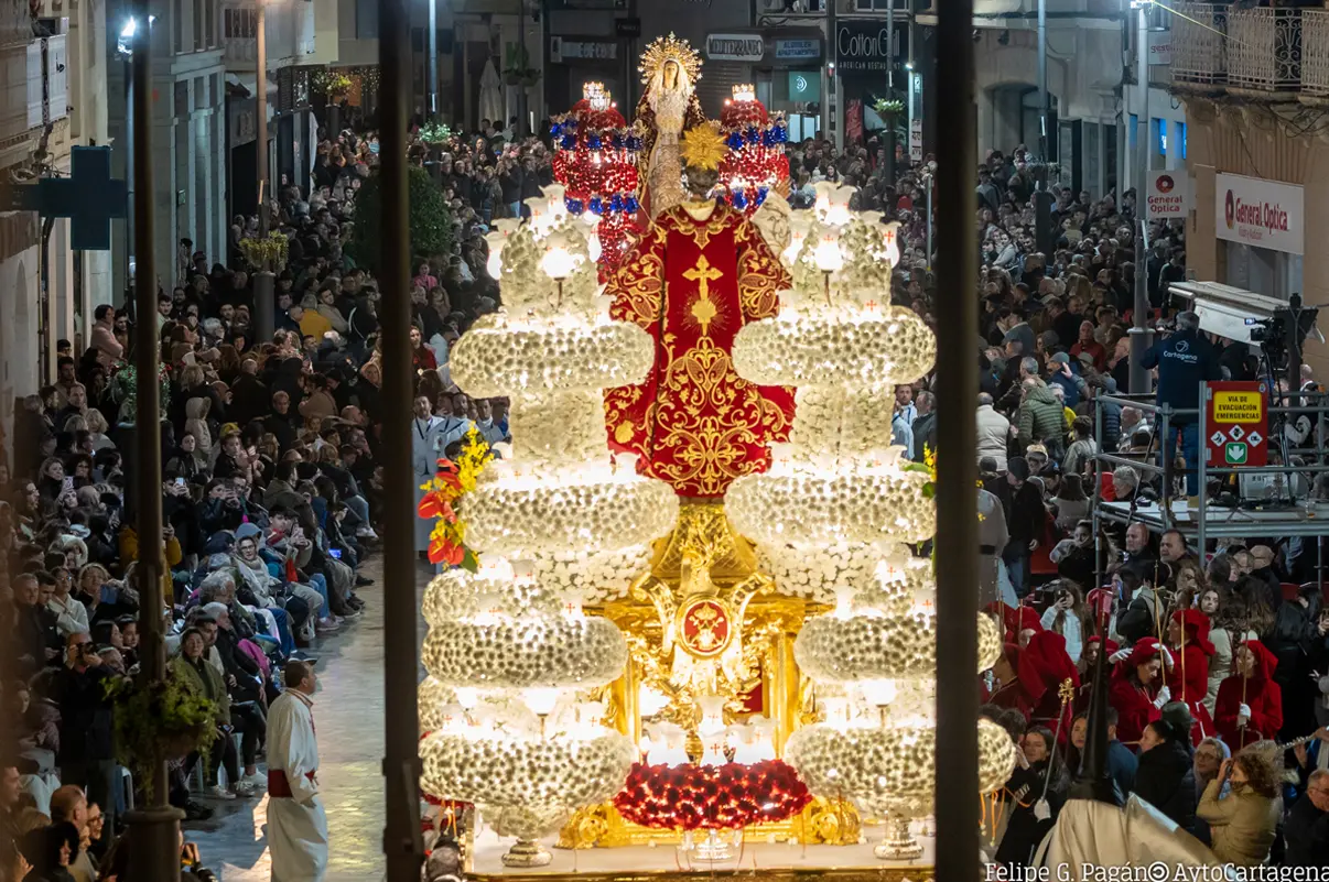 Las procesiones marcan el pulso de la ciudad. Desde el solemne Lavatorio de Pilatos hasta la majestuosidad de la Magna Procesión del Santísimo Cristo del Prendimiento, pasando por el sobrecogedor silencio del Jueves Santo o el dramatismo del Encuentro en la madrugada del Viernes Santo, Cartagena demuestra por qué su Semana Santa es única en el mundo. La madrugada marraja, con sus salidas escalonadas y el esperado encuentro en la plaza de la Merced, vuelve a erigirse como uno de los momentos más intensos, mientras que el Santo Entierro reafirma el carácter solemne de una jornada que culmina con el recogimiento absoluto.