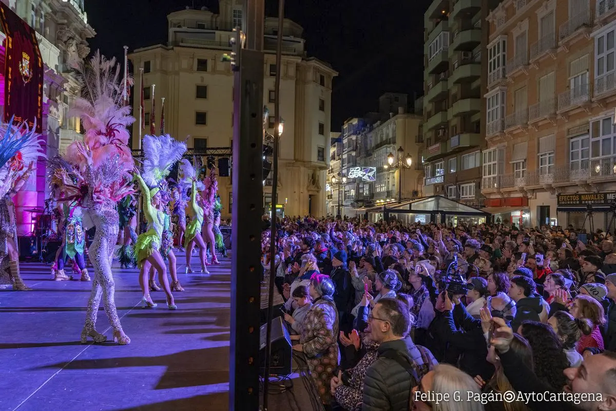 Un gran castillo de fuegos artificiales puso el broche final a la velada, iluminando el cielo y sellando oficialmente el inicio del Carnaval de Cartagena 2026, una celebración que vuelve a latir con fuerza desde el corazón de la ciudad.