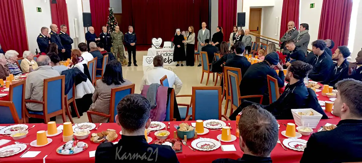 Se entregó un talón de 640 euros a la coordinadora de la acogedora institución, pero la cifra real superó al final los mil euros con el dinero que iban depositando en una hucha todos los que se iban sumando al desayuno, entre los que figuraban reconocidas personas de la vida social, tanto civil y militar, de la ciudad. La ‘hermanita’ recibió esa ayuda con enorme agradecimiento, remarcando también que con este tipo de iniciativas se consigue dar más visibilidad a la labor que hacen.