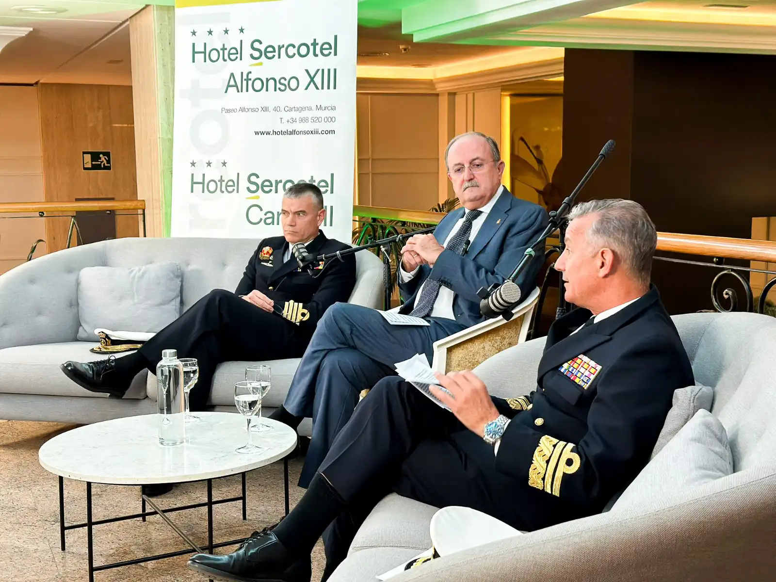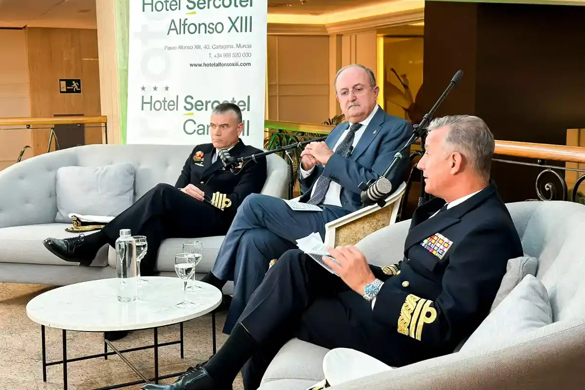 El noveno episodio del ciclo reunió a dos voces que rara vez coinciden en una conversación tan cercana. Primero tomó la palabra el Almirante Alejandro Cuerda, Jefe del Arsenal, que desplegó sobre la mesa un mapa invisible hecho de décadas de trabajo, innovación y marinería. Habló del S-81 Isaac Peral, de su proyección internacional y del peso que el Arsenal sigue teniendo en el entramado estratégico del país. No era una intervención solemne, sino sincera: la de quien conoce cada dique, cada metal y cada historia que sostiene a la Armada bajo el sol cartagenero.
