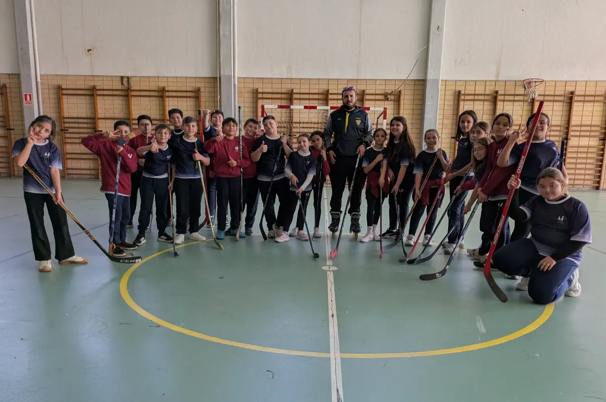 La jornada comenzó con una introducción teórica en la que los alumnos conocieron los fundamentos del hockey en línea, sus normas básicas y el funcionamiento del juego. Con un lenguaje cercano y adaptado a su edad, se explicó el valor del compañerismo, la importancia del respeto al rival y la necesidad de coordinación dentro del equipo, pilares que sostienen cualquier disciplina deportiva.