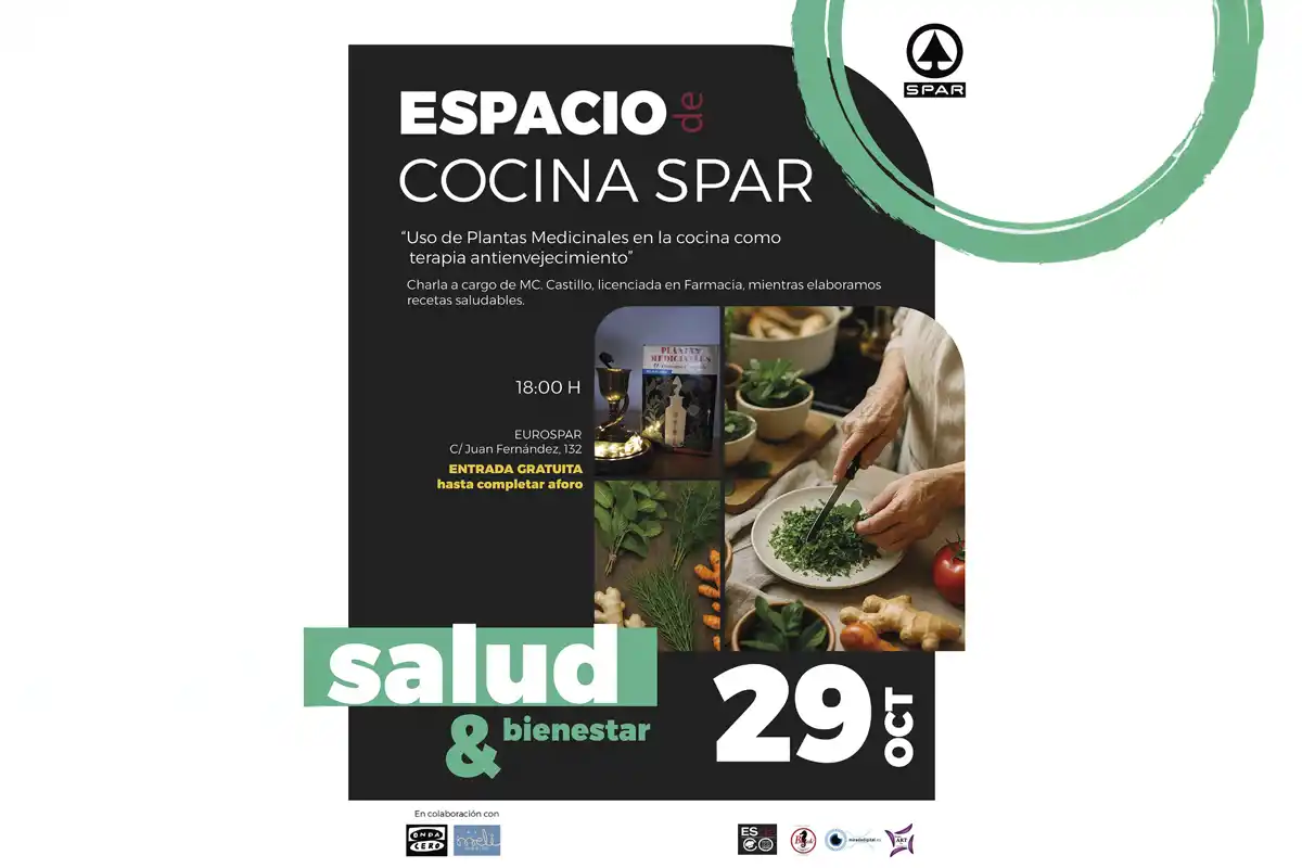 En el marco del ciclo de talleres “Salud y Bienestar”, el Espacio de Cocina SPAR volverá a abrir sus puertas este miércoles con una propuesta centrada en los beneficios de la naturaleza aplicada a la vida diaria. A las seis de la tarde, el supermercado EUROSPAR de la calle Juan Fernández, 132, acogerá una charla práctica sobre el uso de plantas medicinales en la cocina como terapia antienvejecimiento, una actividad gratuita hasta completar aforo.