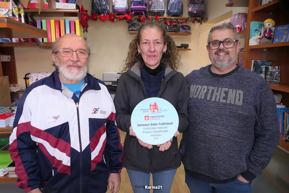María Caridad Sánchez (Barriada de Hispanoamérica): La vencedora de la categoría de belenes de tamaño pequeño o familiar creó para la Librería Don Bosco, que regenta su hija, un nacimiento elaborado a ganchillo con la sagrada familia, los Reyes Magos y sus camellos, la estrella y un ángel. Su elaboración le llevó varios meses.