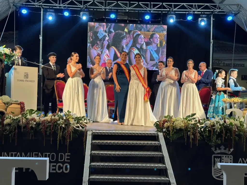 El evento contó con la presencia de las reinas y damas de municipios vecinos, aportando aún más brillo a una noche que supo combinar la solemnidad con la cercanía de un pueblo que celebra sus raíces. Autoridades locales y regionales no faltaron a la cita: el alcalde de Torre Pacheco, Pedro Ángel Roca, el concejal de Festejos, Pedro Baró, miembros de la Corporación Municipal, alcaldes pedáneos, la alcaldesa de Fuente Álamo, Juana María Martínez, la diputada regional María Luisa Ramón y el presidente de la Comisión de Fiestas, Mario Saura, compartieron la velada con los protagonistas.