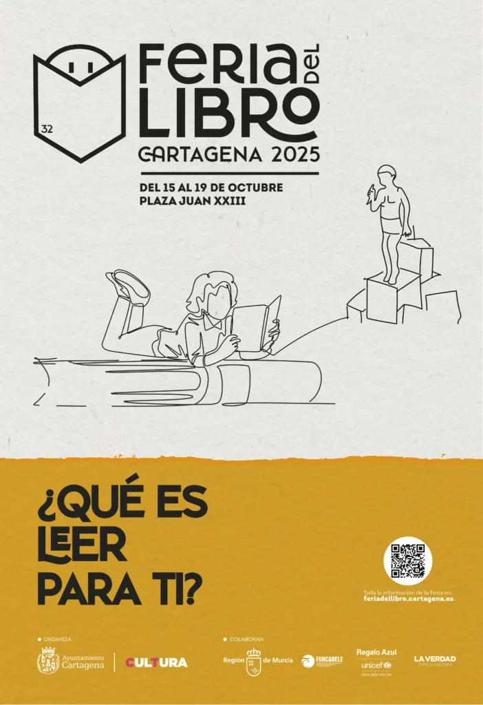 La Feria del Libro de Cartagena celebra este año su 32ª edición, consolidándose como una de las grandes citas culturales de la Región de Murcia. Del 15 al 19 de octubre, la plaza Juan XXIII volverá a llenarse de libros, lectores y actividades que reivindican la lectura como punto de encuentro y motor de reflexión. Contará con el cartagenero Diego Sánchez Aguilar de pregonero y una campaña de comunicación realizada por la agencia Don´t Worry.