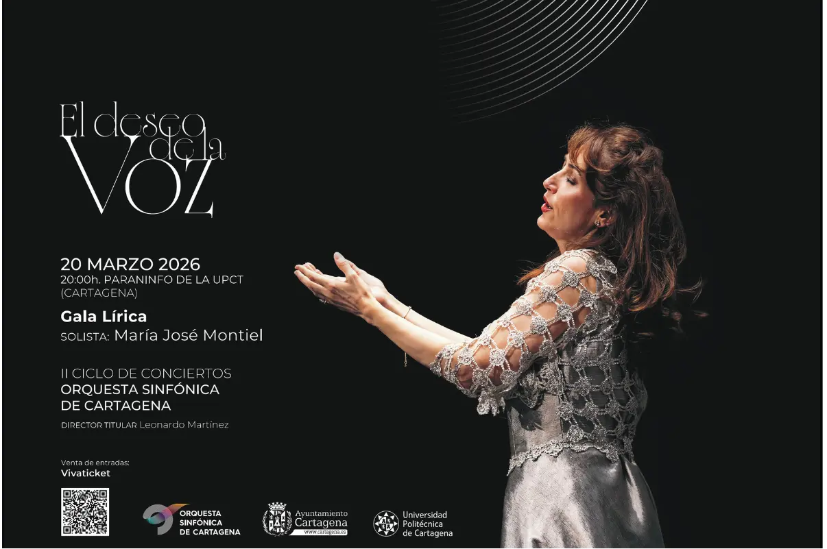 La ciudad de Cartagena se prepara para una velada musical de alto nivel con la gala lírica que ofrecerá la Orquesta Sinfónica de Cartagena el próximo 20 de marzo a las 20:00 horas en el Paraninfo de la Universidad Politécnica de Cartagena. El concierto, que cuenta con la colaboración del Ayuntamiento de Cartagena, reunirá un brillante programa operístico y de zarzuela y tendrá como gran protagonista a una de las voces españolas más destacadas del panorama internacional, la mezzosoprano María José Montiel.
