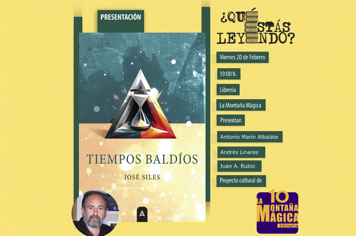 El próximo viernes 20 de febrero, la Librería La Montaña Mágica de Cartagena acogerá la presentación de Tiempos baldíos, la ambiciosa trilogía narrativa de José Siles, publicada por Aliar Ediciones en 2025. La cita reunirá, junto al autor, a Vicente Velasco como anfitrión, y a Andrés Linares, Juan Antonio Rubio y Antonio Marín Albalate, en un encuentro que promete diálogo literario y reflexión histórica, acompañado además por el sugerente maridaje entre literatura y vino.