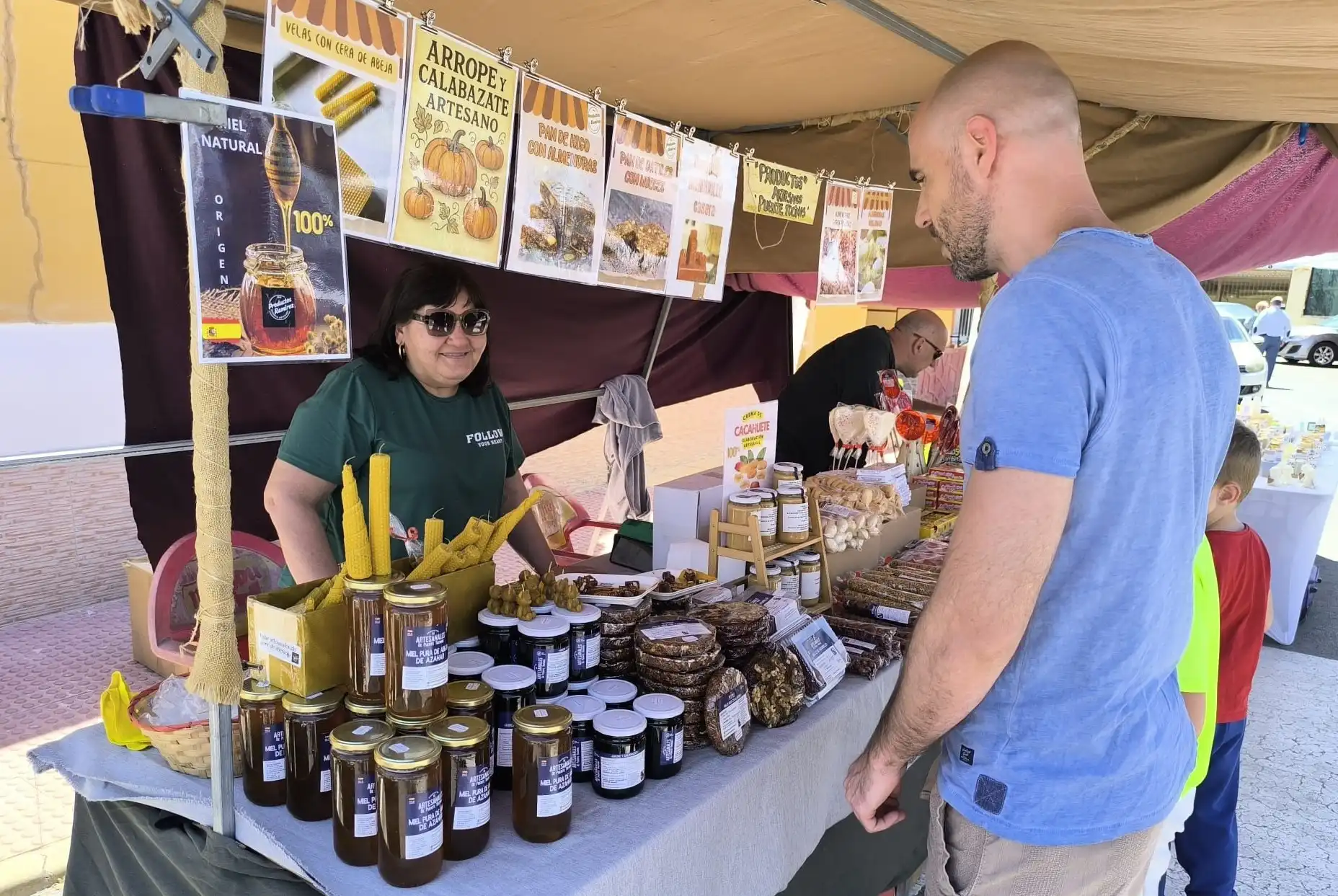 La feria comenzó a las 11:00 horas con la apertura del ‘Mercadillo de Artesanía’, compuesto por más de cincuenta puestos donde se ofrecieron todo tipo de objetos y productos artesanales. De entre todos ellos destacaron la cocina solar de Conchi Meseguer que elaboró tapas y comida en hornos y parabólicas solares, los de pan de higo con almendras, pan de dátiles con nueces, arrope y calabazate artesano, membrillo casero, miel natural y velas con cera de abeja. También el puesto de ‘Los artesanos del salazón’.