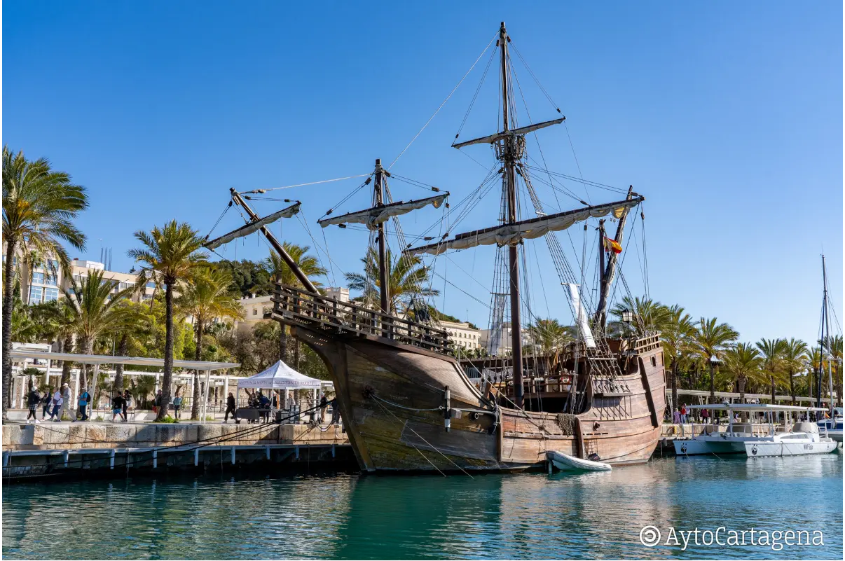 Hay momentos en los que la historia deja de ser un relato lejano para convertirse en algo tangible, casi al alcance de la mano. Eso es exactamente lo que ocurre estos días en el Puerto de Cartagena, donde la réplica de la Nao Santa María ha atracado por primera vez, transformando el muelle en un inesperado viaje al siglo XV.