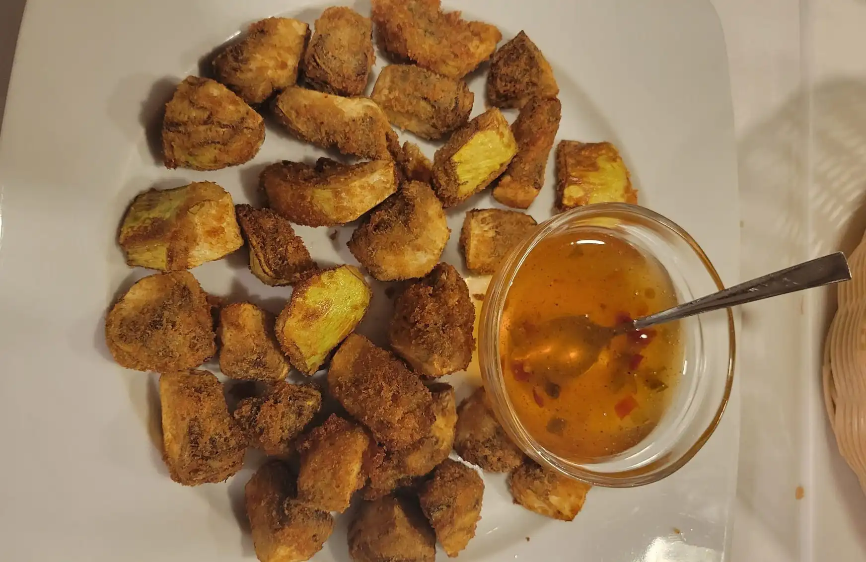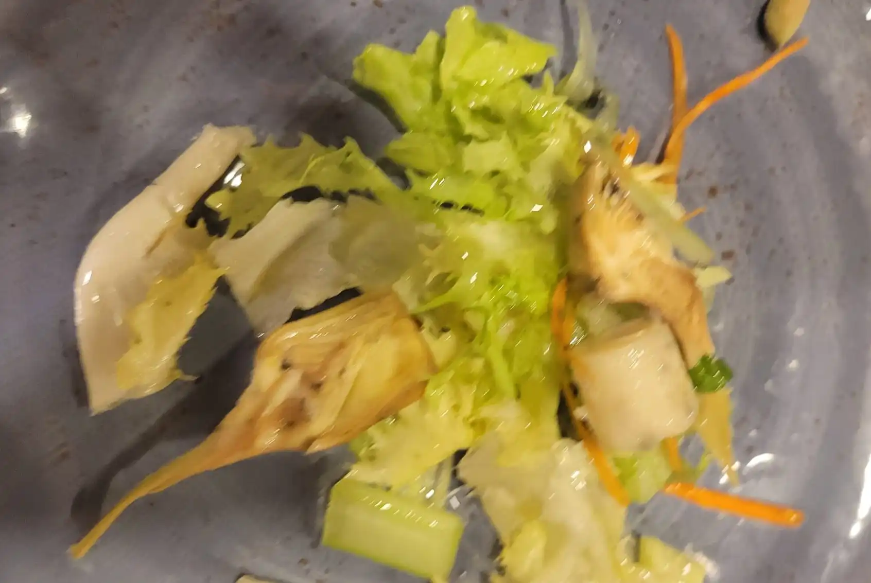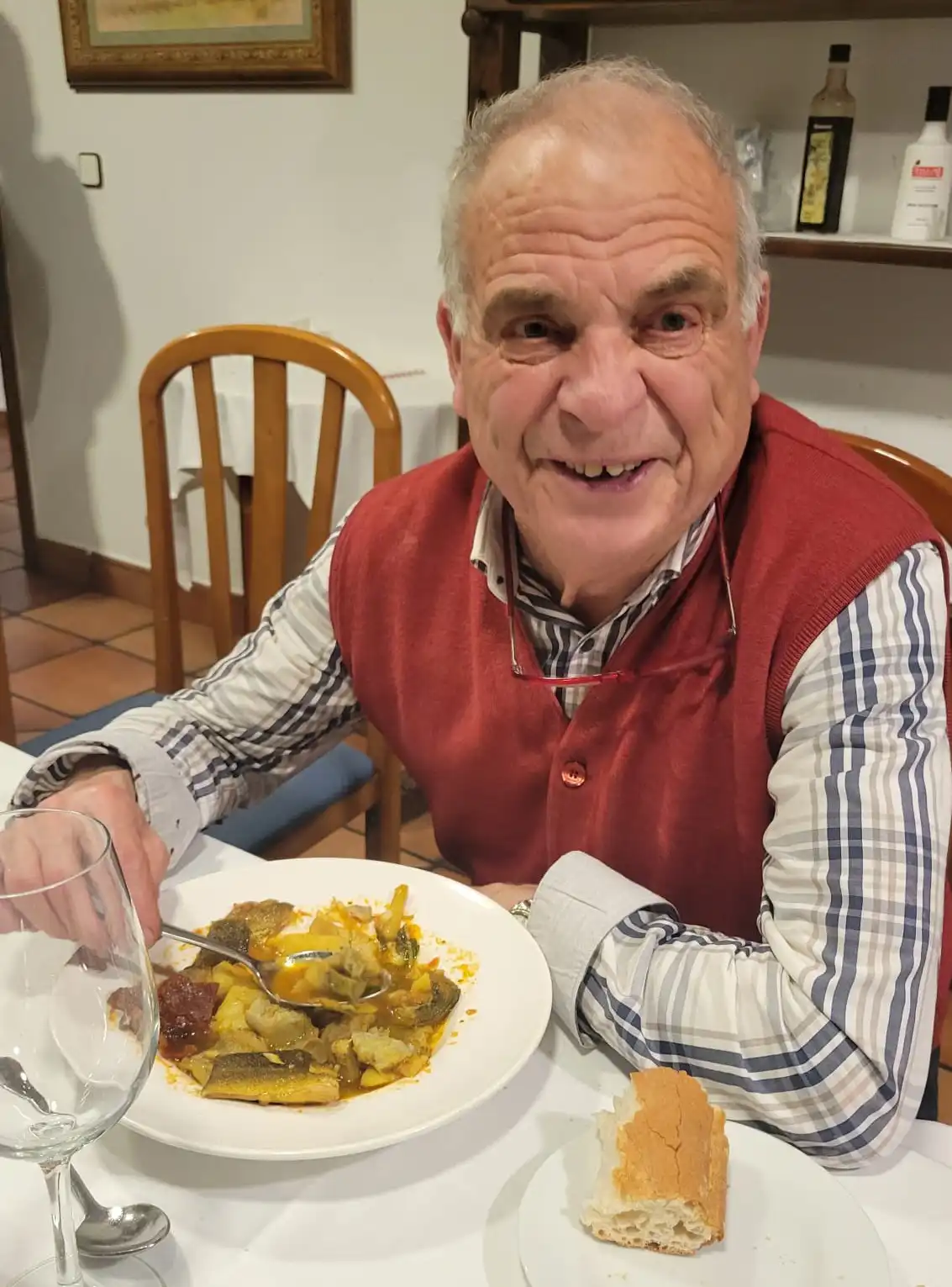 Comenzaron con unos entrantes de ensalada de escarola y apio con alcachofas encurtidos; crujientes de alcachofas con miel que estuvieron «de chuparse los dedos» y unas alcachofas con foie con una salsa de rebañar el plato con el sopeteo. Después pasaron a un canelón de pollo de corral con alcachofas que estuvo soberbio. El camarero Miguel Ángel les sorprendió con un cortante de sorbete de alcachofas. El segundo plato fue un guiso de alcachofas con bacalao y ajos tiernos, un «platazo de sabor». Todo regado con el nuevo vino del Campo de Cartagena Señorío de la Cámara, cepa vieja de 14,5% en nariz muy aromática y, en boca, estructurado y vigoroso. El postre consistió en una Creme Brulee y unos asiáticos cantonales.