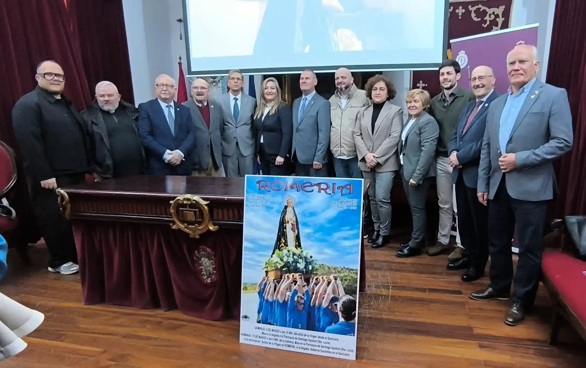 Fue entonces cuando se presentó el cartel de la Romería de este año y, acto seguido, se proyectó el documental ‘Vuelta al Calvario’. El film narra de una forma íntima cómo se vive la bajada de la Virgen hasta la Iglesia de Santiago Apóstol, el Vía Crucis por las calles del barrio de Santa Lucía, su encuentro con el Cristo Moreno de Los Mateos y, por último, la Romería en Vía Crucis hasta la vuelta a la ermita en el Monte Calvario. La obra ha sido dirigida por Enrique Selma.