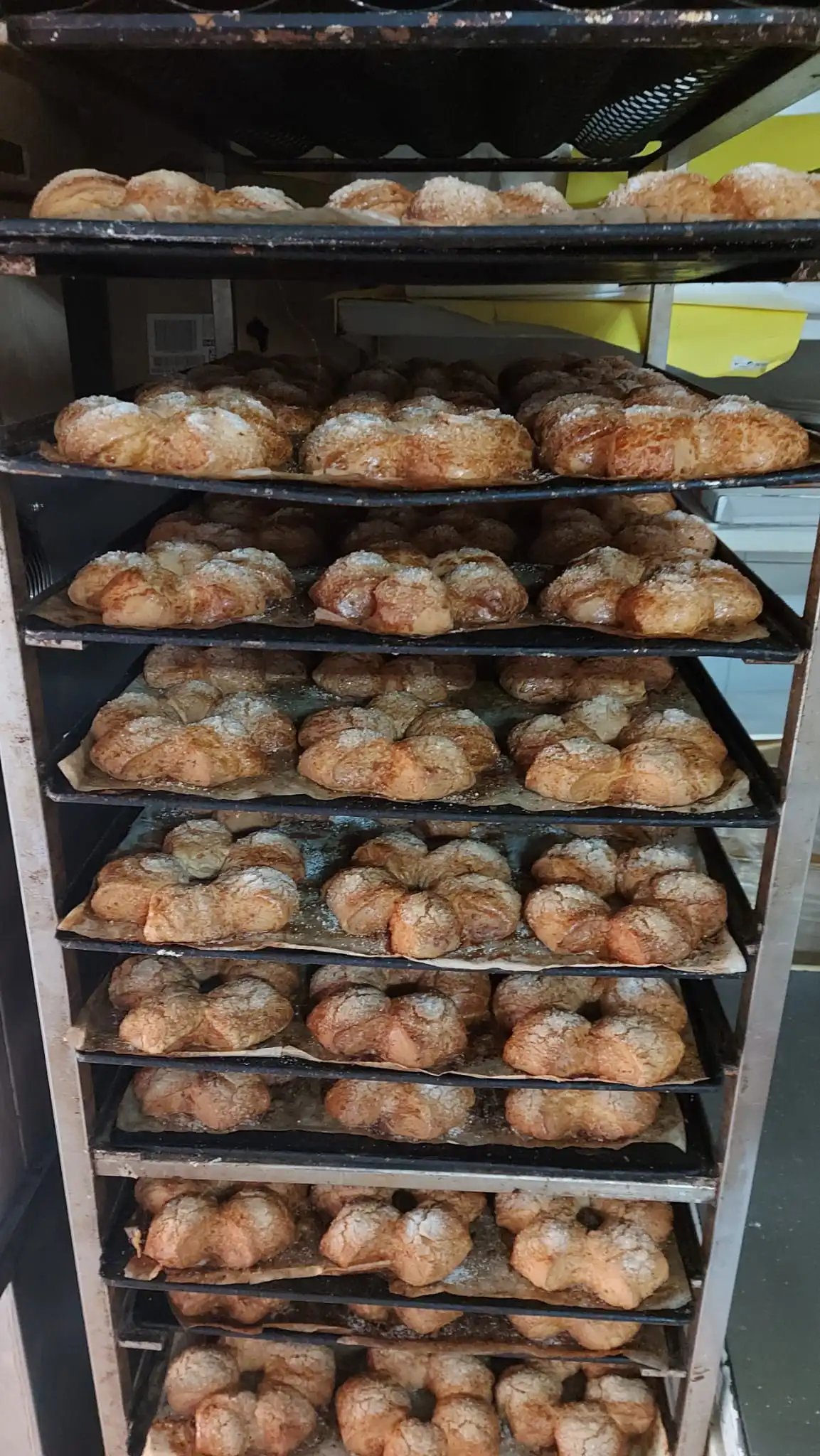 Flori, una de las almas que sostuvieron aquel negocio familiar tan querido en Cartagena, ha abierto este espacio recuperando un pedazo esencial de su espíritu: el horno, las manos que saben lo que hacen y unas recetas que llevan más de cuarenta años acompañándonos. ¿Quién no recuerda aquel olor a rollos recién hechos que se escapaba por la acera, que llenaba la tienda, que despertaba el apetito incluso antes de cruzar la puerta? Ese aroma, compañeros de mesa y de recuerdos, ha vuelto a casa. Porque La Querencia ocupa exactamente el mismo lugar donde tantas veces compramos pan casero, rollos, cordiales, pastas floras, empanadillas y una lista interminable de dulces que forman parte de nuestra propia historia.