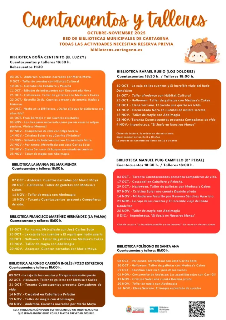 La Red de Bibliotecas Municipales de Cartagena arranca el trimestre con una programación repleta de actividades para todas las edades: talleres, cuentacuentos y bebecuentos que llenarán las bibliotecas de creatividad, magia y diversión.