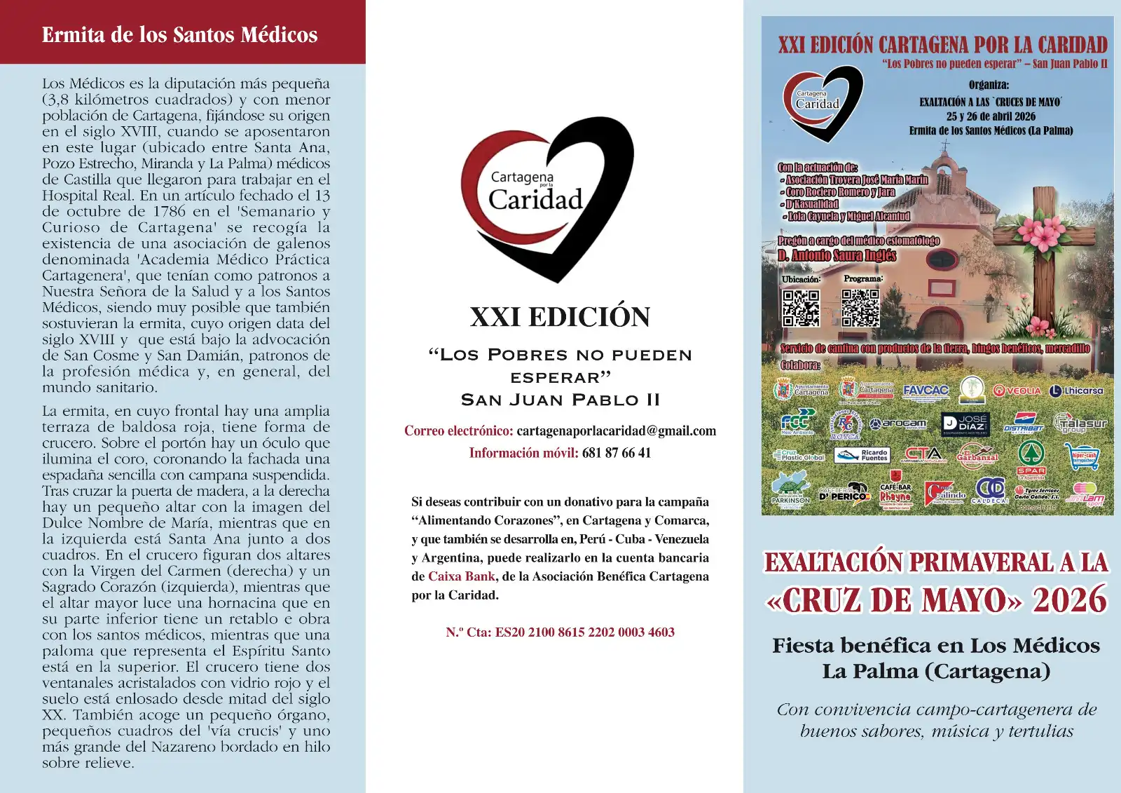 La iniciativa, organizada por la Cartagena por la Caridad, tiene como principal objetivo recaudar fondos para restaurar la histórica ermita de los Santos Médicos, dedicada a San Cosme y San Damián, patronos del ámbito sanitario.
