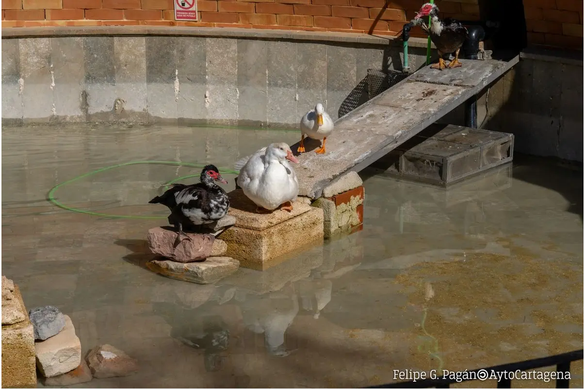 La estampa vuelve a ser la de siempre. El sonido del agua, el leve batir de alas y ese movimiento tranquilo que forma parte de la memoria colectiva de varias generaciones. El Ayuntamiento de Cartagena, a través de los servicios de Sanidad y de Parques y Jardines, ha devuelto a la fuente del Parque Torres a una decena de patos que fueron retirados el pasado mes de noviembre como medida preventiva ante un foco de gripe aviar.