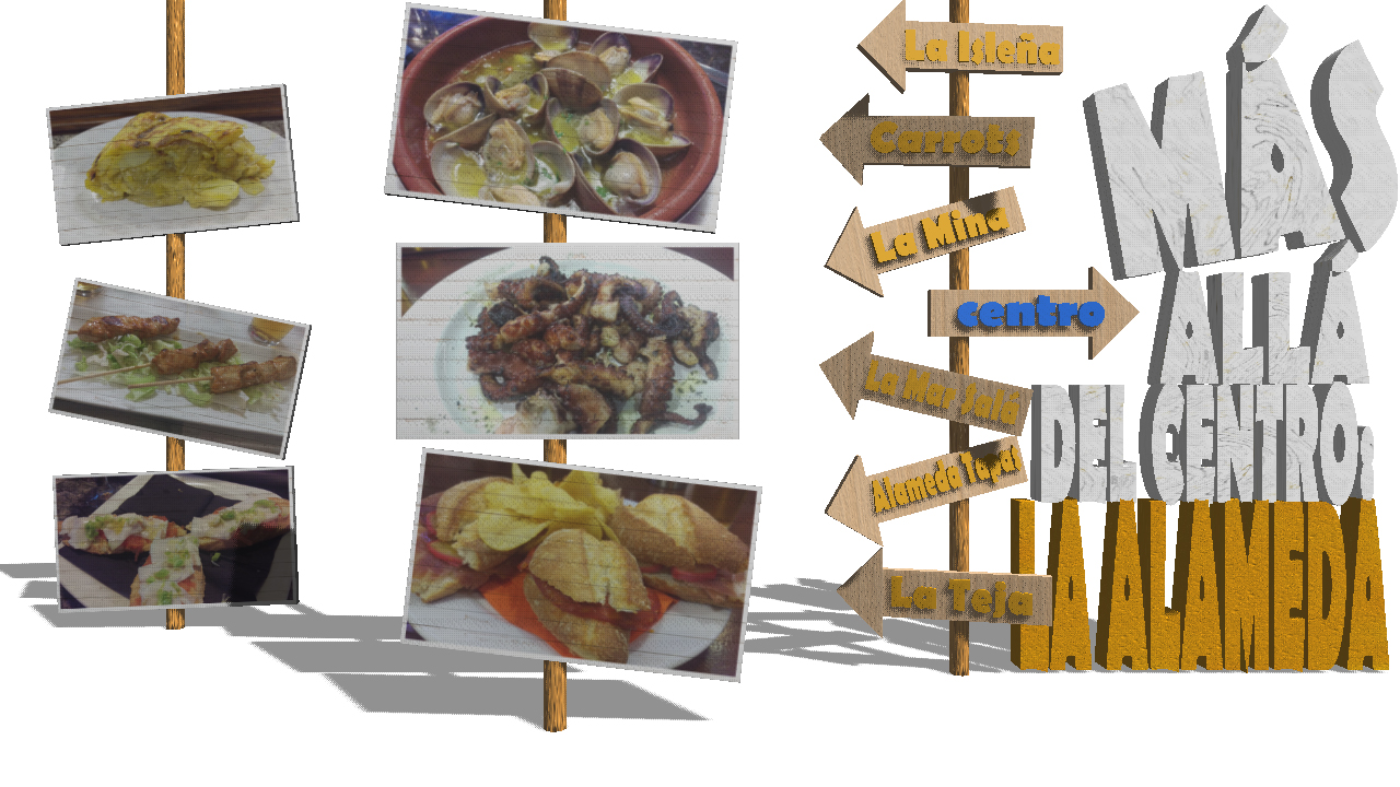 Nos situamos en la acera Este de la Alameda de San Antón, y el objetivo es tomar, al menos una tapa, en cada uno de los bares, desde La Isleña hasta La Teja, pasando por Carrots, La Mina, La Mar Salá y Alameda Tapas.