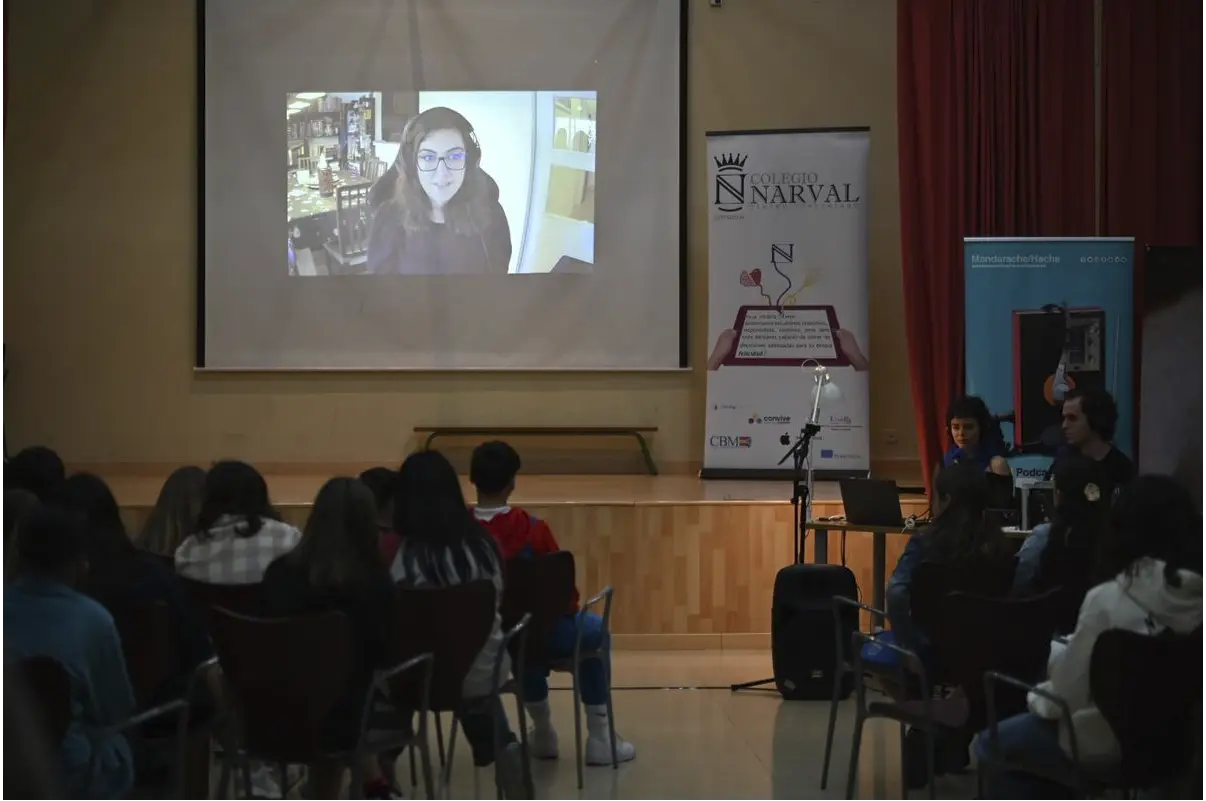 La cita, conducida por Estela Santos y Guillermo Carrasco, se desarrolló en un formato semipresencial que ya es seña de identidad del proyecto: conversación directa en el aula y conexión en línea con más de 25 centros educativos de Cartagena. La retransmisión en directo permitió que el diálogo trascendiera las paredes del colegio y se convirtiera en un espacio común para el alumnado participante en esta edición del programa.