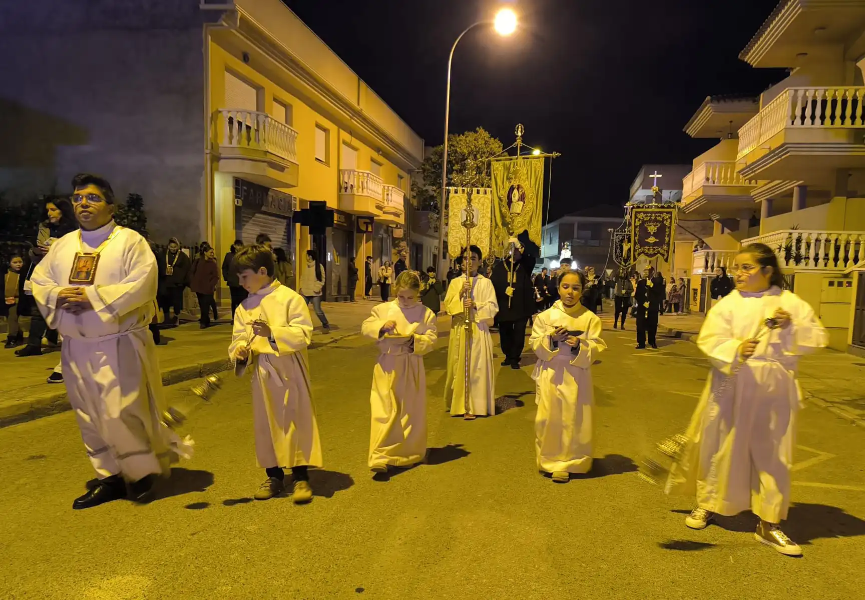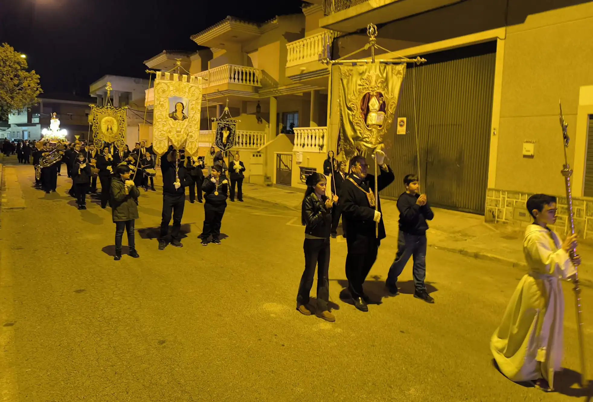 La Misa comenzó a las 19:00 horas y, al terminar, empezó la procesión recorriendo las principales calles de la diputación en la que participaron portapasos tanto masculinos como femeninos. Al finalizar el cortejo la banda de música interpretó el Himno Nacional y hubo un castillo de fuegos artificiales.
