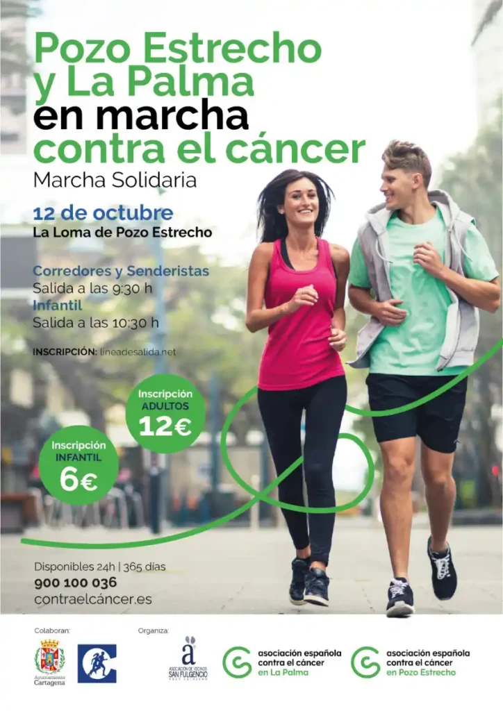 La carrera absoluta, con salida y meta en la Loma de Pozo Estrecho, arrancará a las 9:30 horas sobre un recorrido asfaltado de seis kilómetros que los participantes podrán afrontar corriendo o caminando, en un ambiente abierto y familiar. Los más pequeños tendrán también su espacio con carreras infantiles de 800 y 1600 metros a partir de las 10:30 horas. Cada inscripción cuenta y cada zancada tendrá un mismo destino: la recaudación íntegra se destinará a la Asociación Española Contra el Cáncer.