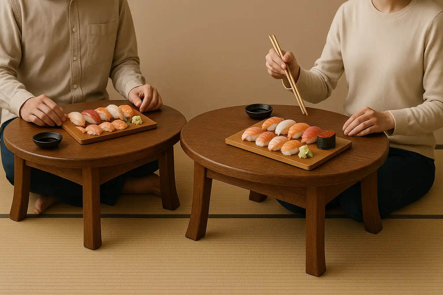 Si quieres un concepto más convencional y tener opción a carta, HAI contará con mesas chabudai. Una mesa chabudai es una mesa baja, de unos 30 o 40 cm de alto, donde los comensales se sientan en el suelo sobre cojines. Aunque en Occidente hay algún truco que otro para que, los que no estamos acostumbrados, podamos meter las piernas en algún sitio. Ya se verá cómo lo hacen aquí. En estas mesas podremos elegir de una elaborada carta donde la alta cocina japonesa estará muy presente y conoceremos técnicas de cocina como el binchōtan.