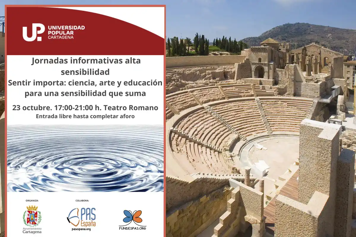 La Universidad Popular del Ayuntamiento de Cartagena, en colaboración de la Asociación PAS España, va a celebrar unas jornadas informativas sobre la alta sensibilidad en personas, el próximo 23 de octubre en el Museo del Teatro Romano, de 17:00 a 21:00 horas, con entrada gratuita hasta completar aforo.