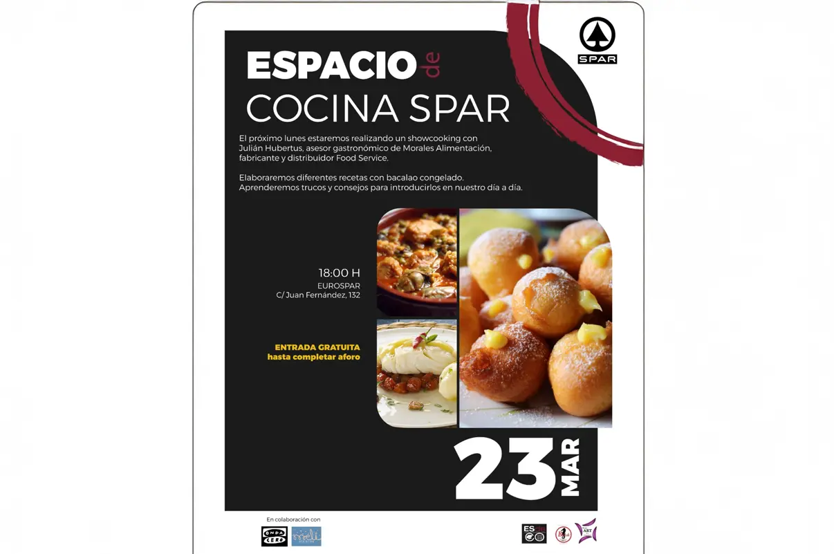 El Espacio Cocina de SPAR abrirá sus puertas a una propuesta que va más allá de una simple demostración culinaria. A las 18:00 horas, en el Eurospar de la calle Juan Fernández, 132, comenzará un showcooking pensado para todos los públicos, donde el bacalao congelado será el protagonista absoluto de la jornada.