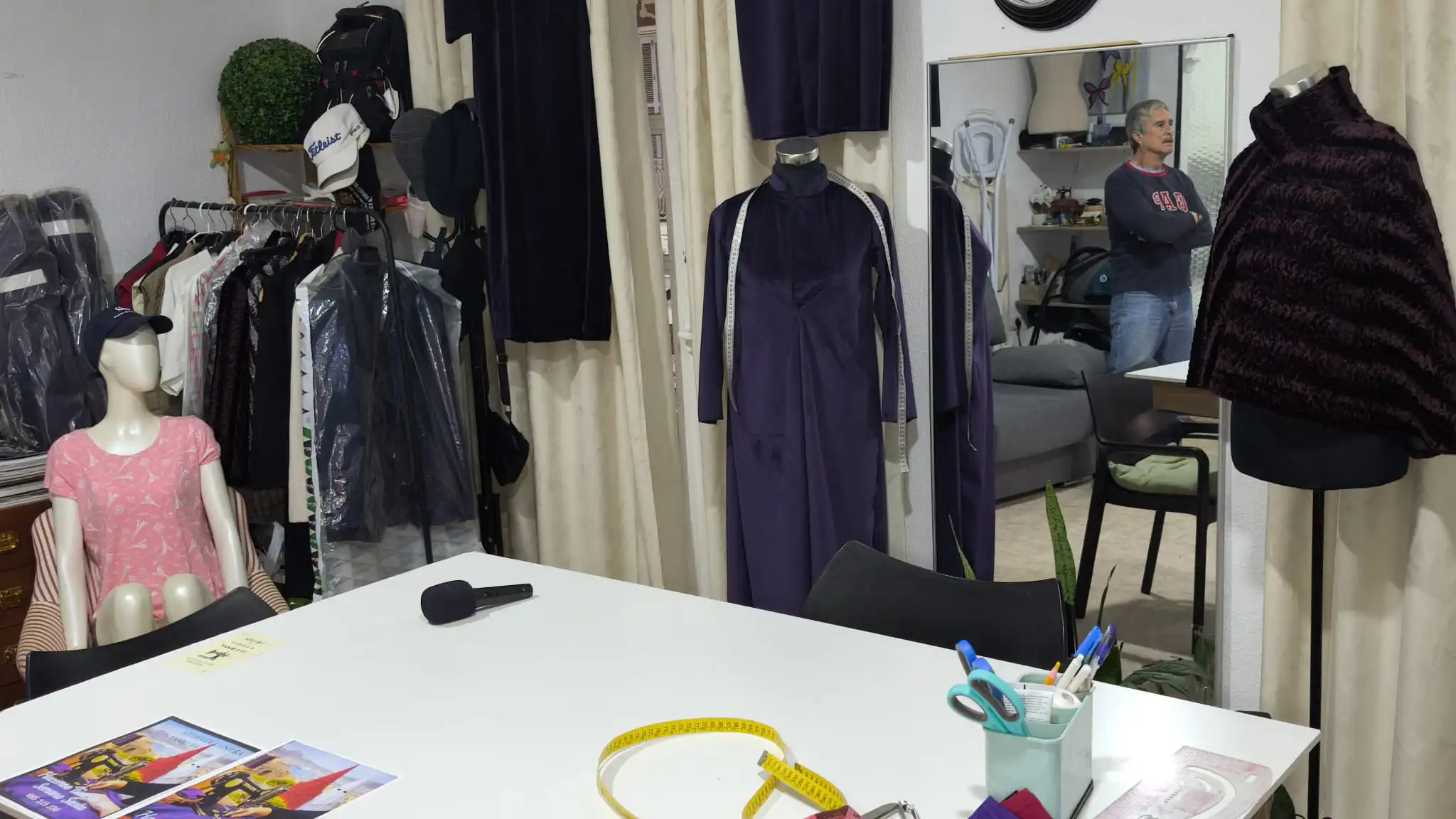 El taller se ha especializado en la confección de túnicas de Semana Santa, una labor que exige dedicación y experiencia. Cada pieza se realiza a medida, adaptándose a las necesidades de cada cofrade y cuidando los detalles que hacen única a cada túnica. Desde el corte de la tela hasta el último remate, todo el proceso se desarrolla de manera artesanal, con la intención de que cada prenda acompañe durante años a quien la viste en las procesiones.